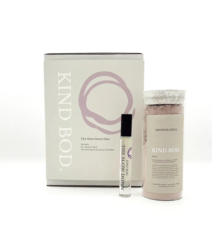 Need a break from the hustle? The Slow Down Duo is your personal invitation to chill. Packaged in a beautiful gift box, this calming duo pairs our soothing The Slow Down Essential Oil Roller with the tranquil Zen Shower Spell for the ultimate moment of relaxation.