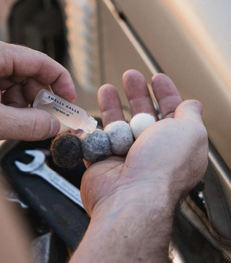 This set includes four unscented felt balls with a branded charm and elastic string, making them easy to hang in your car and a 5mL bottle of our captivating Tobacco and Vanilla fragrance oil, a harmonious fusion of clary sage and cedarwood complemented by hints of leather, tobacco, and delicate vanilla.